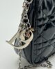 La pelle verniciata nera mantiene la sua lucentezza originale, con il motivo Cannage perfettamente definito. Sono presenti solo minimi segni di usura dovuti al normale utilizzo, che testimoniano l’autenticitร del pezzo senza compromettere la sua bellezza.