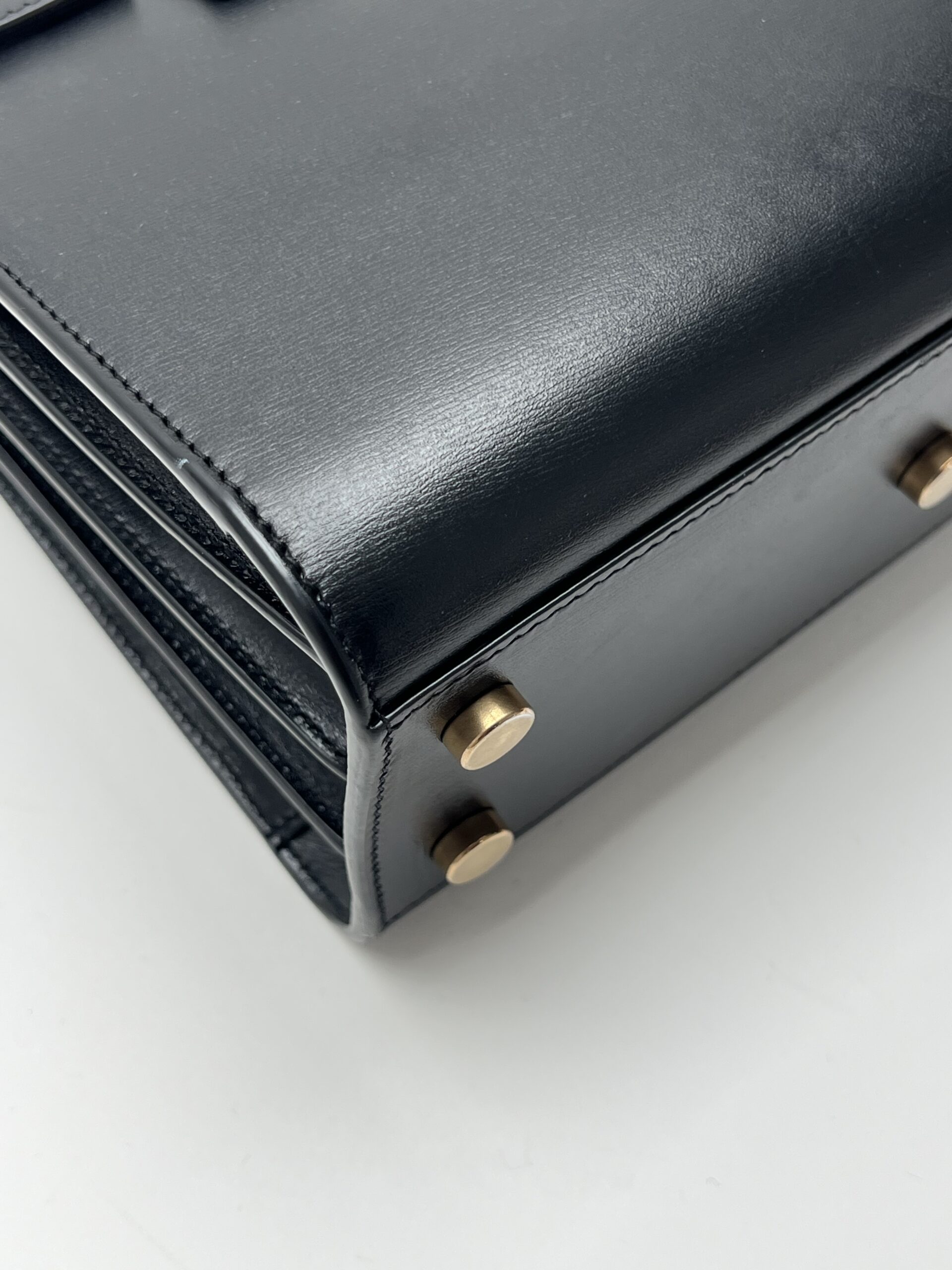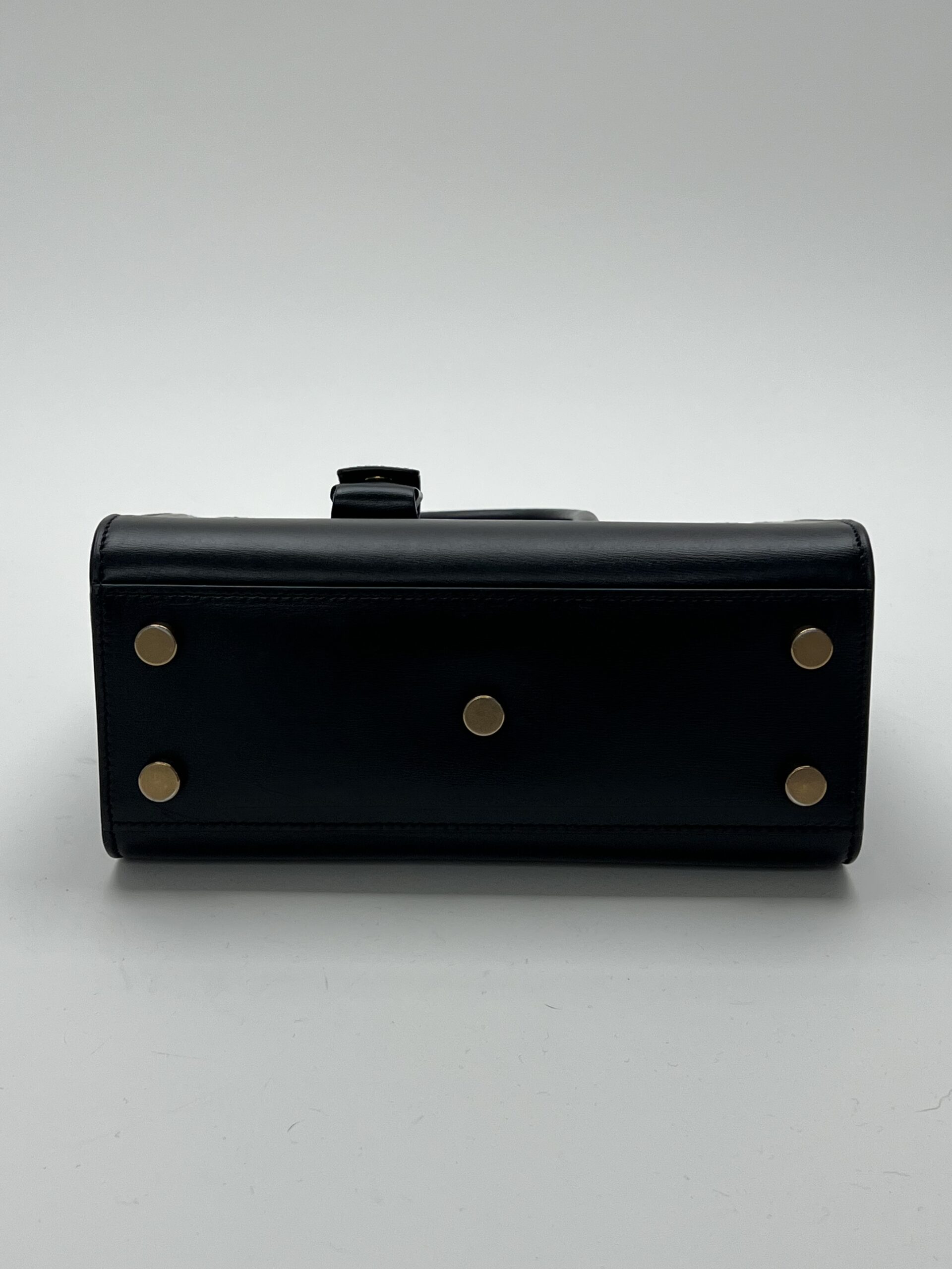 La pelle liscia nera mantiene la sua lucentezza originale. ร presente un mini difetto sul retro, visibile nelle foto, che non compromette l’estetica generale della borsa.